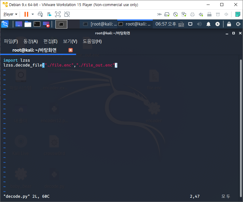 이제 해당 코드를 file.enc가 있는 경로에서 실행해주면