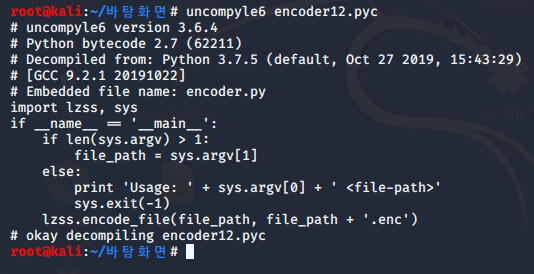 encoder를 리눅스에서 실행해보면 알겠지만 저 encoder는 어떤 파일이나 프로그램을 암호화 시켜주는 역할을 한다.