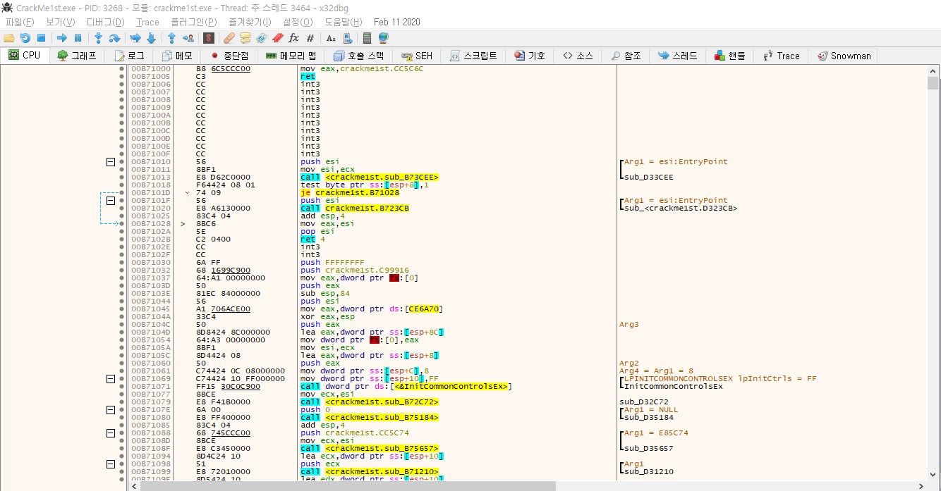 받은 .exe 파일을 x64dbg로 열어보았습니다.