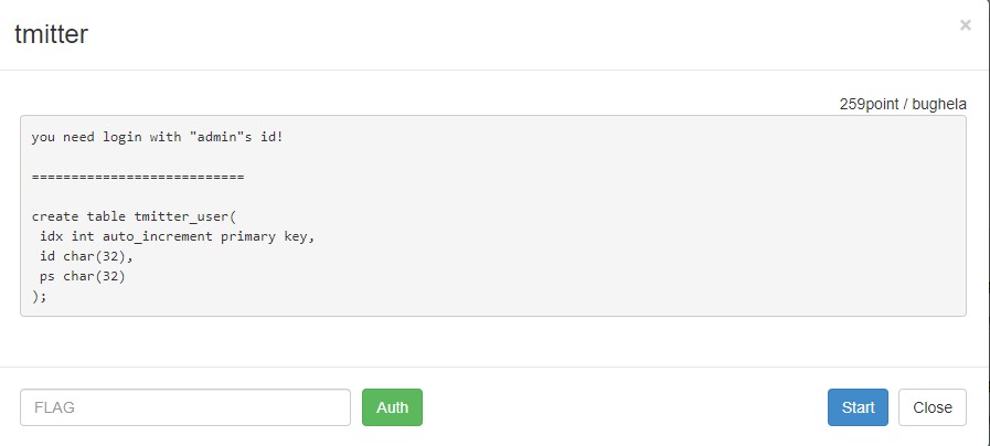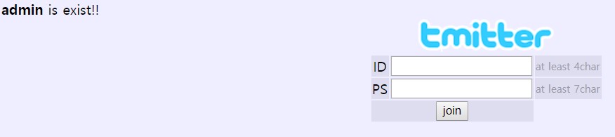 소스 맨 밑줄에 힌트를 보았을 때 admin 계정을 생성이 필요함을 알 수 있습니다.