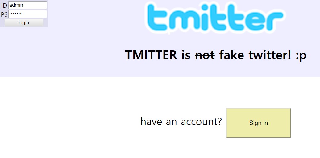 admin 계정이 필요하므로 'New to Tmitter' 로 들어가보았습니다.