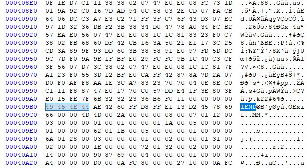 PNG 파일 형식은 사진과 같이 IEND로 끝나는데 이 후 내용이 더 있는 것을 보아 다른 파일이 숨겨져 있는 것을 알 수 있습니다.