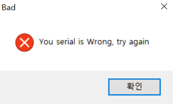 실패 시 뜨는 “You serial is Wrong, try again”를 기반으로 String 검색을 해보면