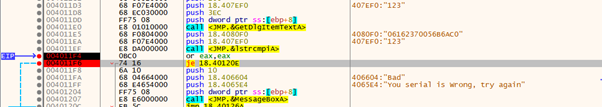 이 코드부분 위쪽을 분석해보다 보면 성공과 실패로 나뉘는 분기점의 jmp 코드를 찾을 수 있다.