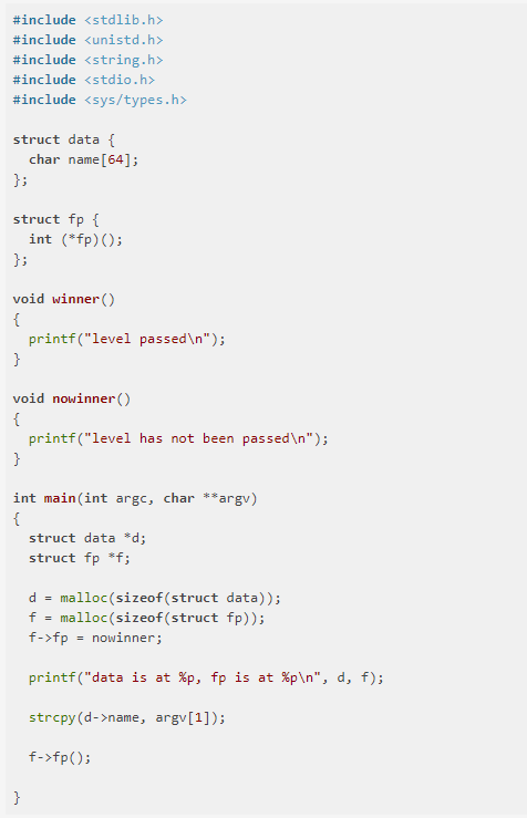저 부분을 힙 오버플로우를 통해 winner()함수를 가리키게 해야한다.!!